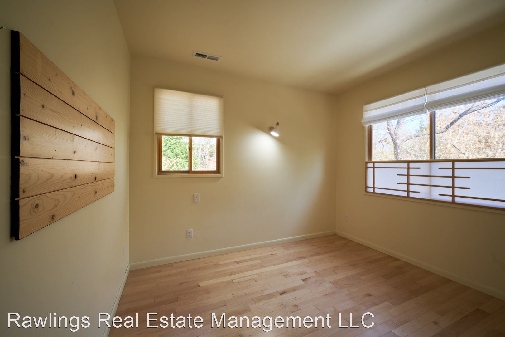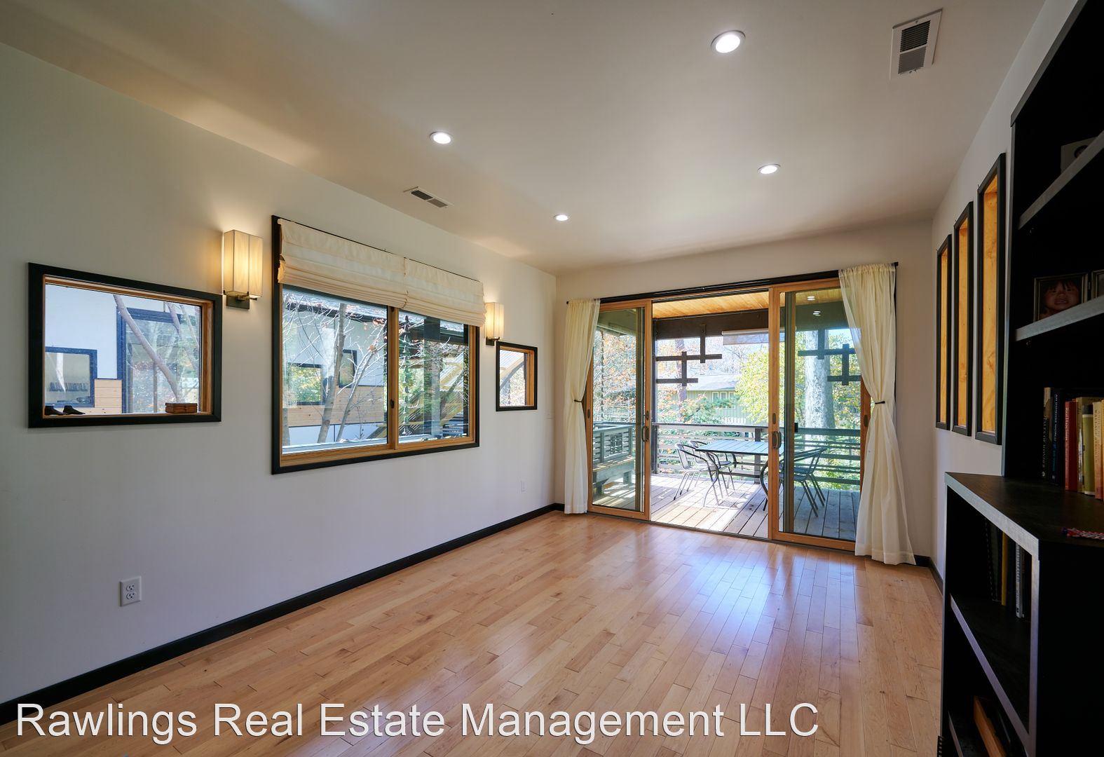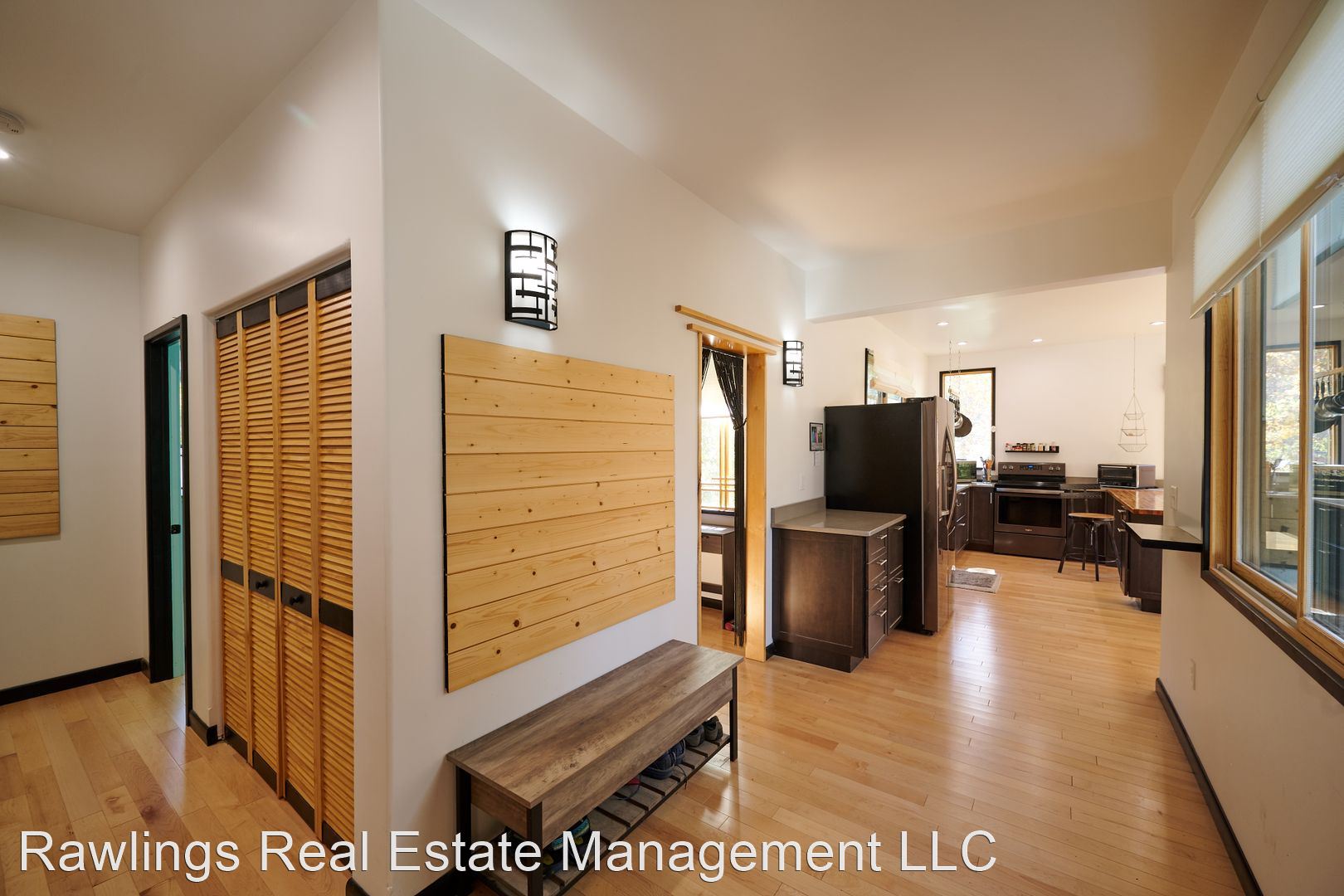 Indoor spaces receive wonderful natural light, and natural wood elements including hardwood floors are throughout. Two spacious living areas, one of which is open with the kitchen, can be configured as your living room, dining room, or office. The open kitchen has wood block and solid surface countertops, nice cabinetry with deep drawer storage, and a walk-in pantry. Kitchen appliances include the refrigerator and electric range.