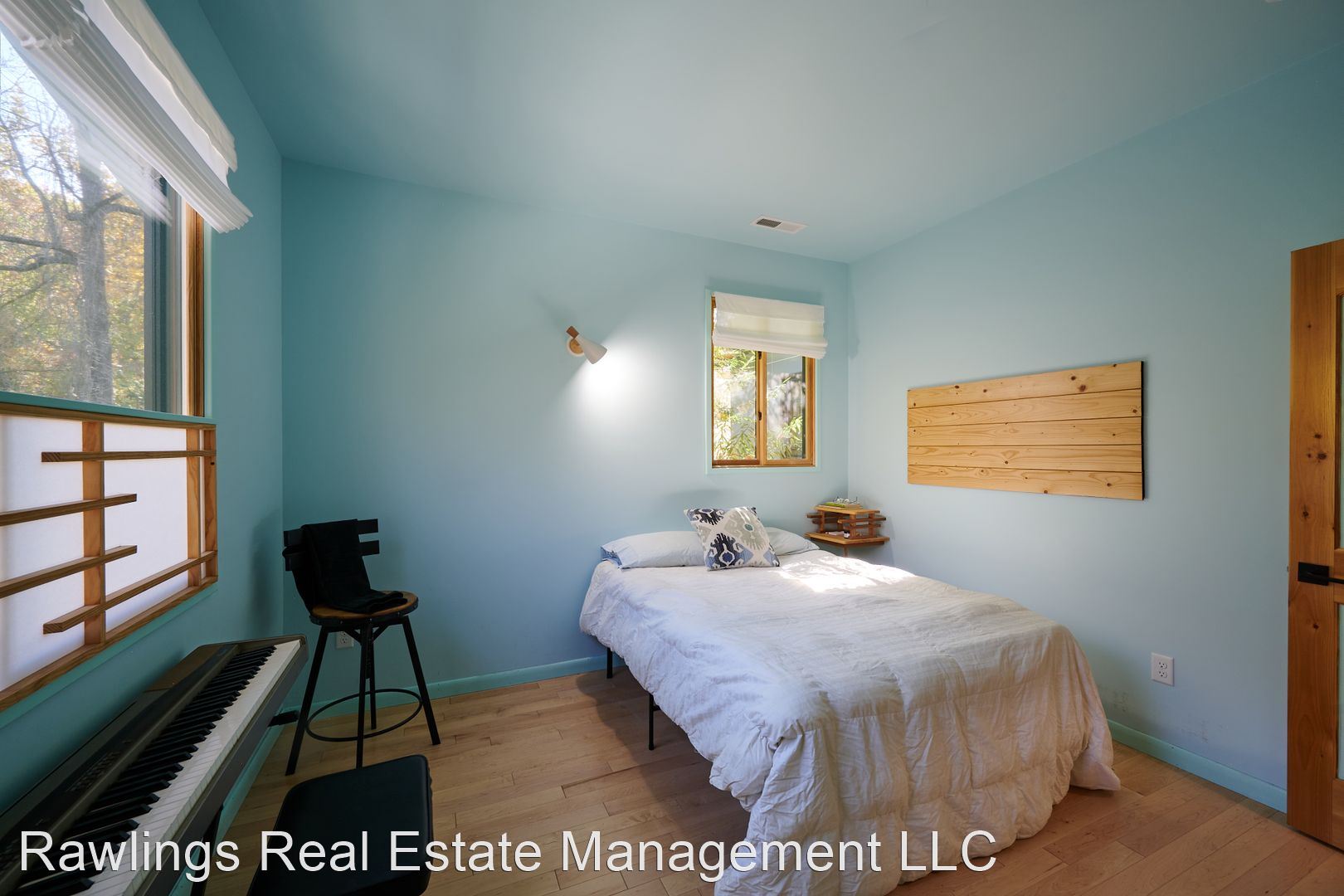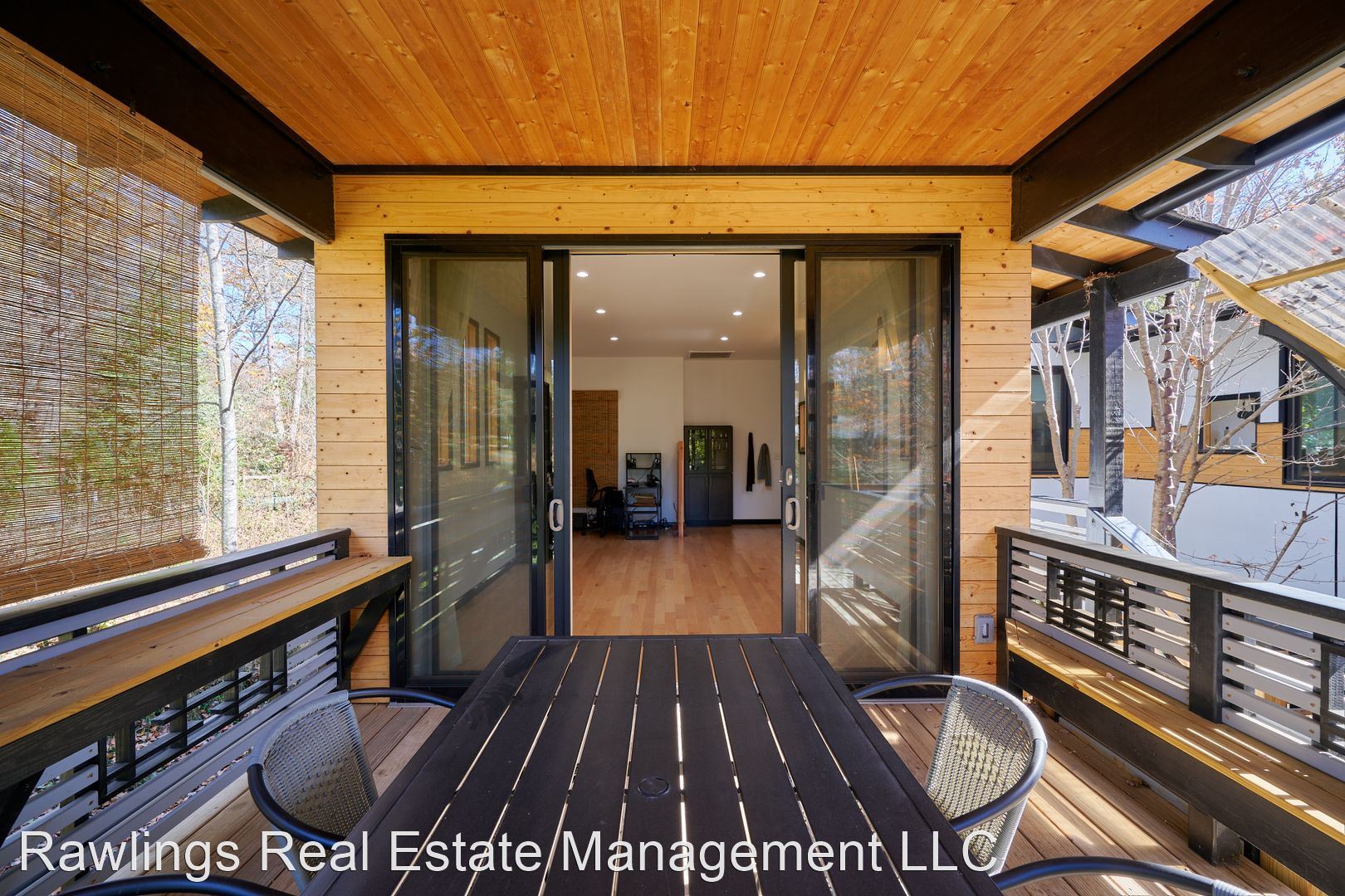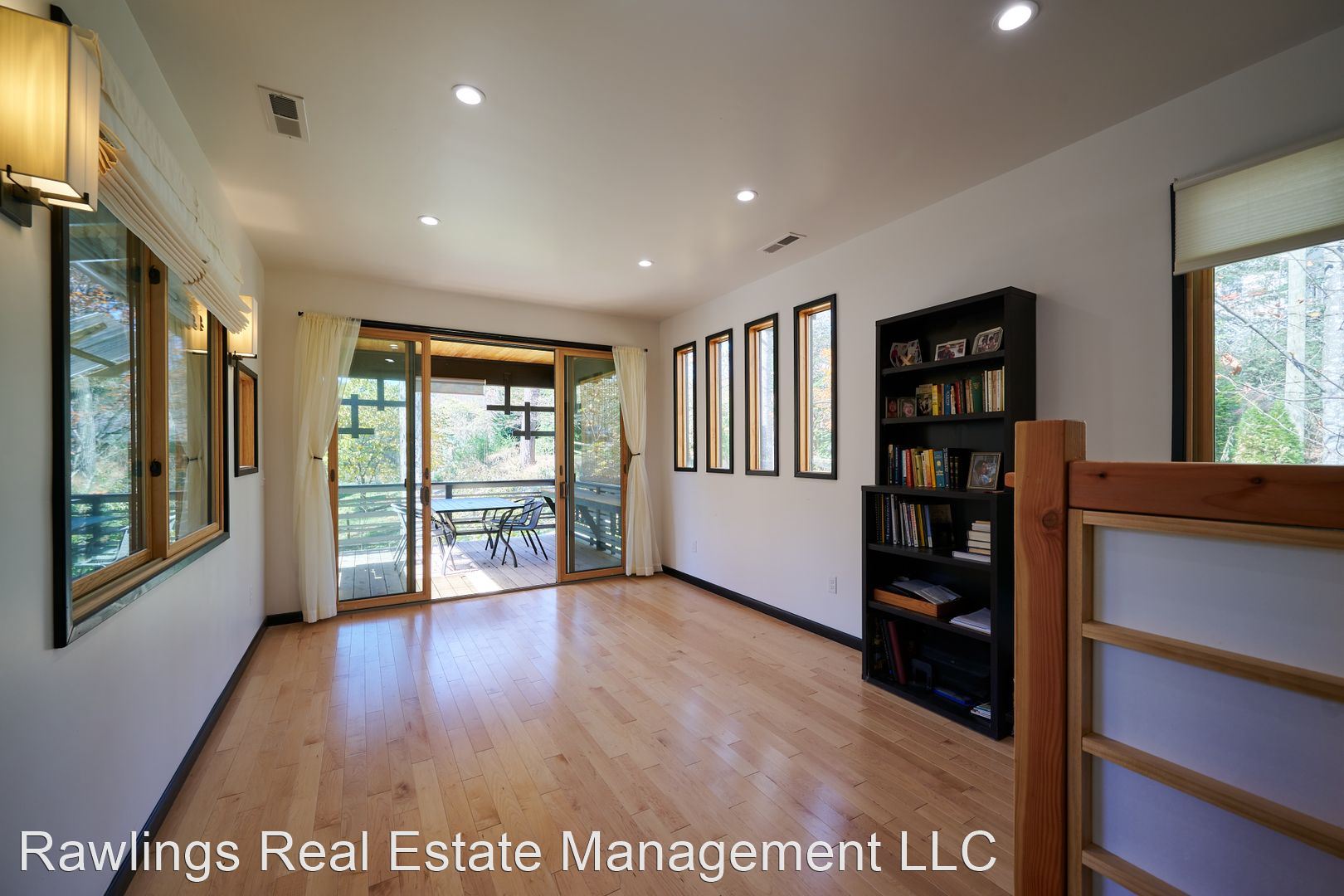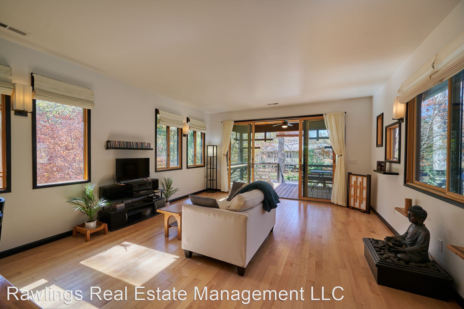 Indoor spaces receive wonderful natural light, and natural wood elements including hardwood floors are throughout. Two spacious living areas, one of which is open with the kitchen, can be configured as your living room, dining room, or office. The open kitchen has wood block and solid surface countertops, nice cabinetry with deep drawer storage, and a walk-in pantry. Kitchen appliances include the refrigerator and electric range.