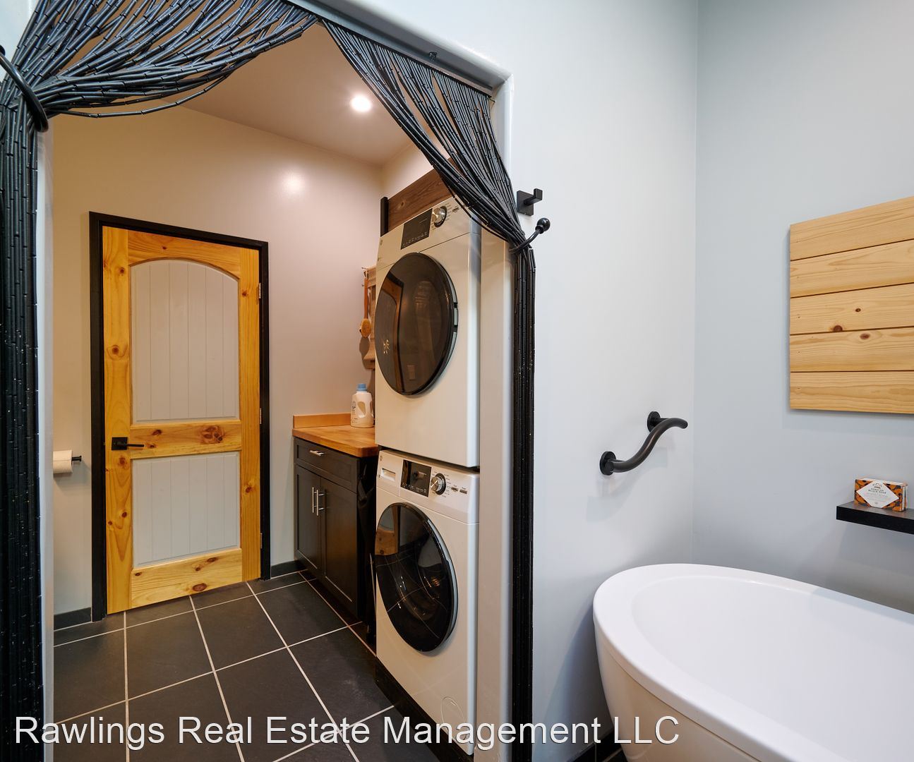 Both bedrooms, the full bathroom, and a closet are off of the hall. The bedrooms have large windows and nice-sized closets. The bathroom offers a serene color palette, a skylight, beautiful tile, a free-standing tub, and separate walk-in shower. Laundry is in the bathroom, and the stacked washer and dryer are included.