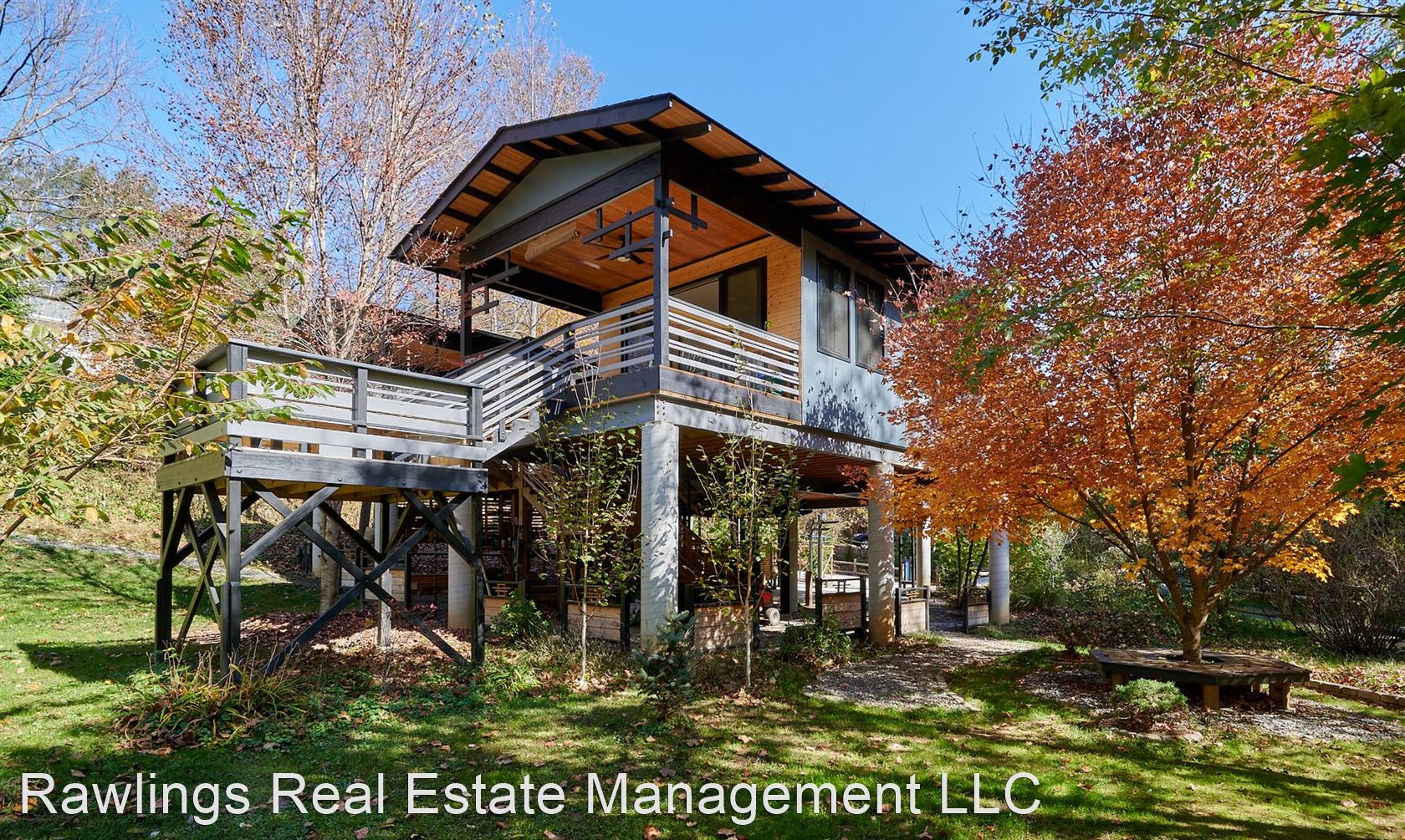 Extraordinary Home, Artfully Designed - One-of-a kind home, energy efficient and custom-built to take full advantage of this unique location across from the Swannanoa River in East Asheville. Elevated on concrete piers, the house and decking are situated among tree tops. The entry staircase and a river birch tree ascend between the wings of the U-shaped floor plan. Interconnected decks with built-ins extend off of the living areas, offering many opportunities for outdoor living. This is a special house!