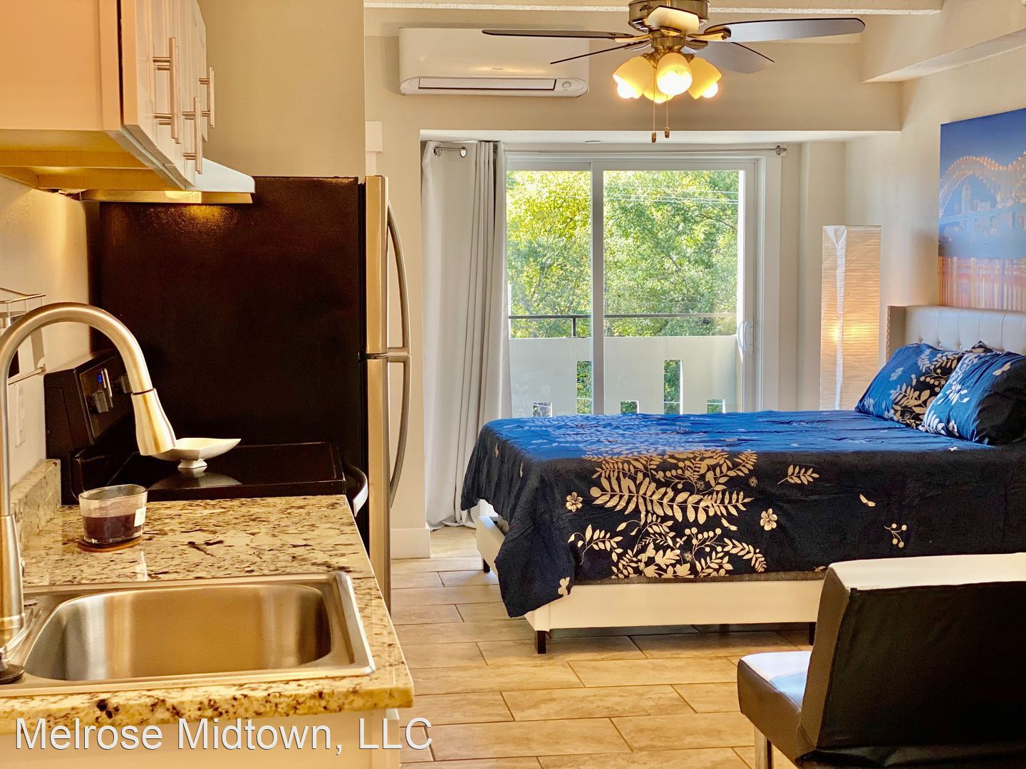 The Ramona - One of our most beautiful apartments is the Ramona. Enjoy a kitchen fit for a chef, a huge balcony or garden, your own private gated townhome entrance and parking space, a marble bathroom, and so much glass and natural light that you won't want to leave! The Ramona is named in honor of a very special Melrose Midtown resident who has been with us since 1972 and still calls the Melrose home. If you're ready to move, we're ready to meet you! The Melrose won the 2019-2022 award for Best Apartment Community in all of Memphis. Find out why and take a tour today. Please Note: Pricing at the Melrose is slightly higher on the north side and for unit 112, which has a very large private garden. Private assigned parking spaces are also a little extra.